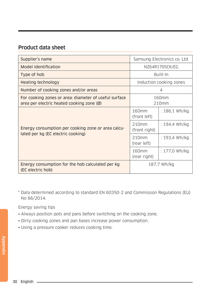 - Kochzone 210mm (hinten links) kW 2.1 (Booster kW 2.5)