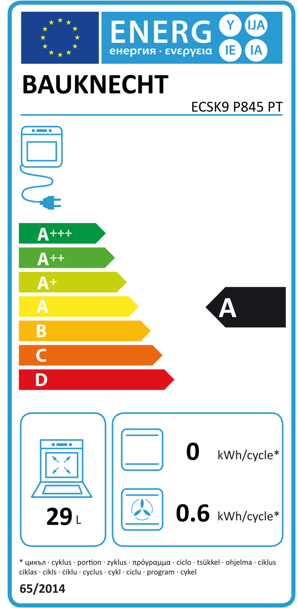 - Energieverbrauch nach DIN 0.6 kWh Umluft