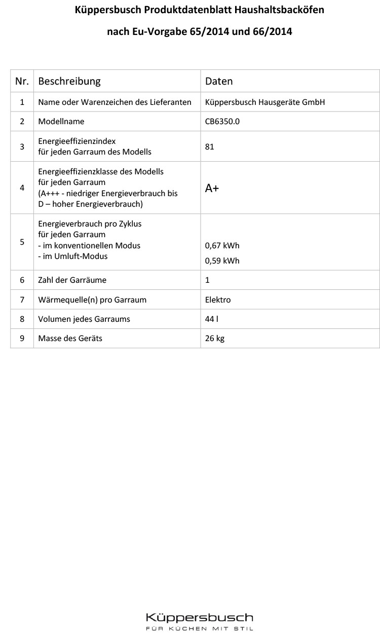 • Austausch gegen einen gleichwertigen oder neuen Artikel Küppersbusch CB 6350.0 (ggf. auch ein Nachfolgemodell).
