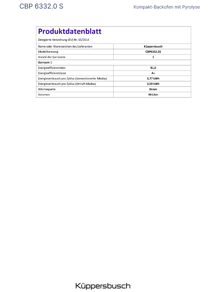 • Austausch gegen einen gleichwertigen oder neuen Artikel Küppersbusch CBP 6332.0 (ggf. auch ein Nachfolgemodell).
