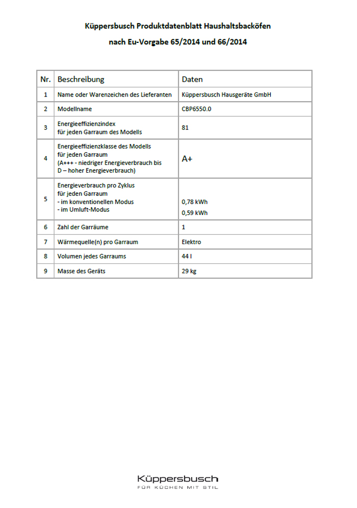 • Austausch gegen einen gleichwertigen oder neuen Artikel Küppersbusch CBP 6550.0 (ggf. auch ein Nachfolgemodell).