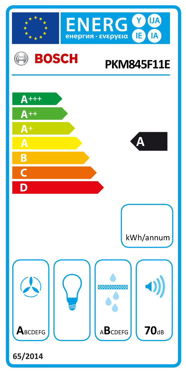 - Energie-Effizienzklasse: A (auf einer Energie-Effizienzklassenskala von A++ bis E)