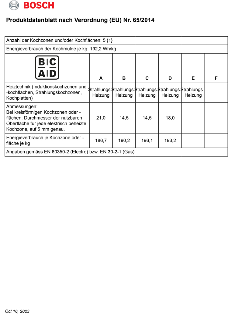 - Produktbezeichnung / -familie: Kochstelle Glaskeramik