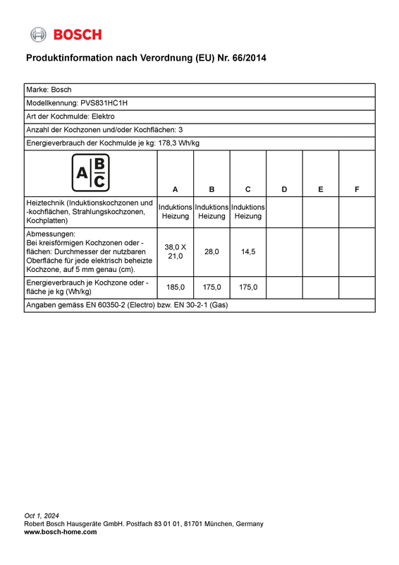 Produktbezeichnung / -familie: Kochstelle Glaskeramik, Idunktionskochfeld