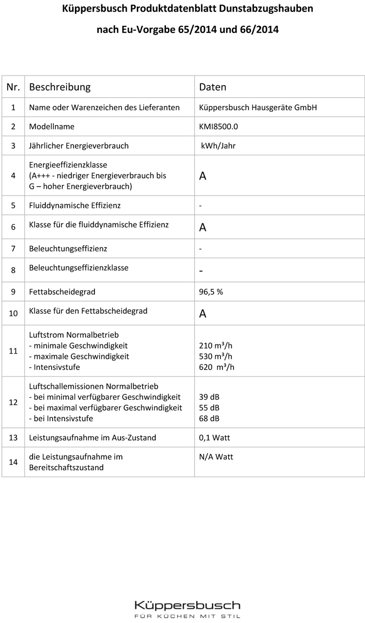 • Austausch gegen einen gleichwertigen oder neuen Artikel Küppersbusch KMI 8500.0 (ggf. auch ein Nachfolgemodell).