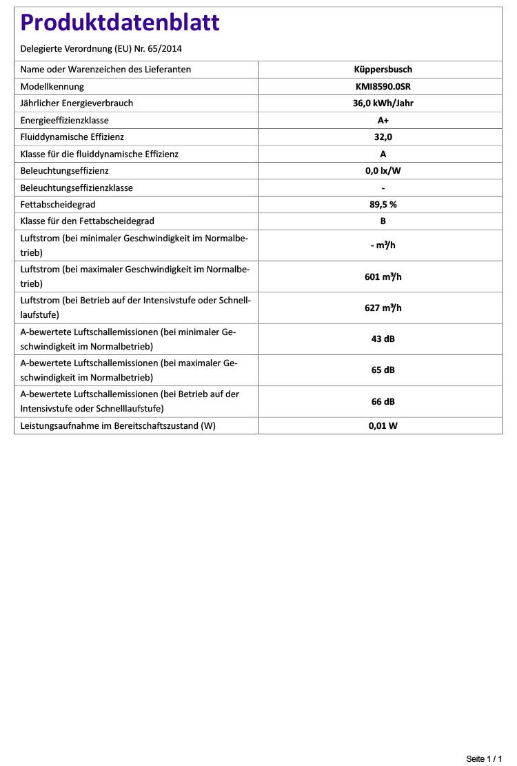 • Austausch gegen einen gleichwertigen oder neuen Artikel Küppersbusch KMI 8590.0 (ggf. auch ein Nachfolgemodell).
