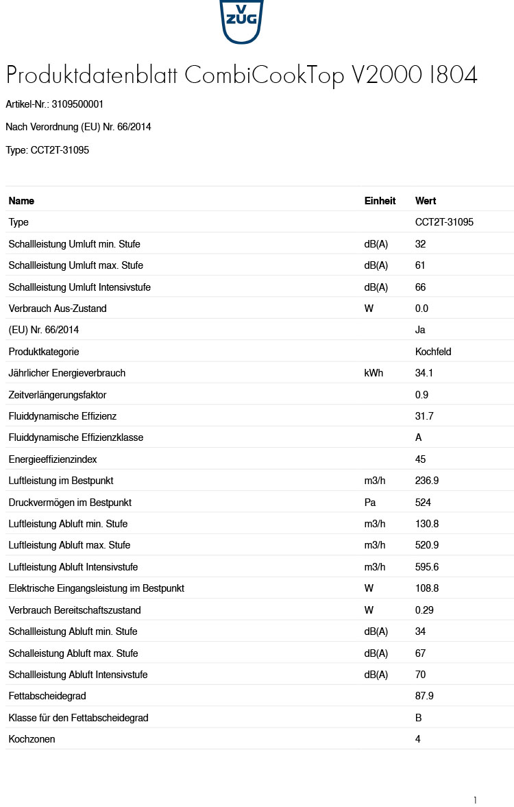 - Reparatur des Artikels V-ZUG CombiCookTop V2000 I804, Induktions-Kochfeld mit Dunstabzug, Dual Design, 3109500001