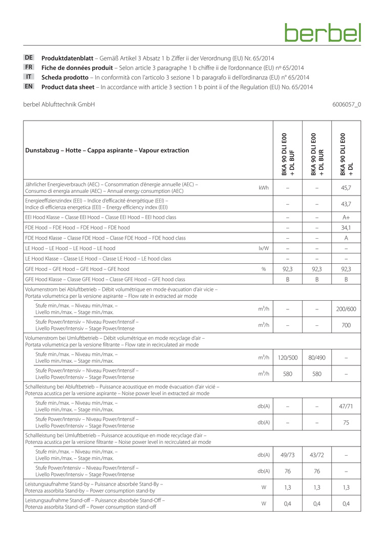- Dauerhaft effektive Absaugung von Koch- und Bratdünsten dank des leistungsfähigen berbel Prinzips.