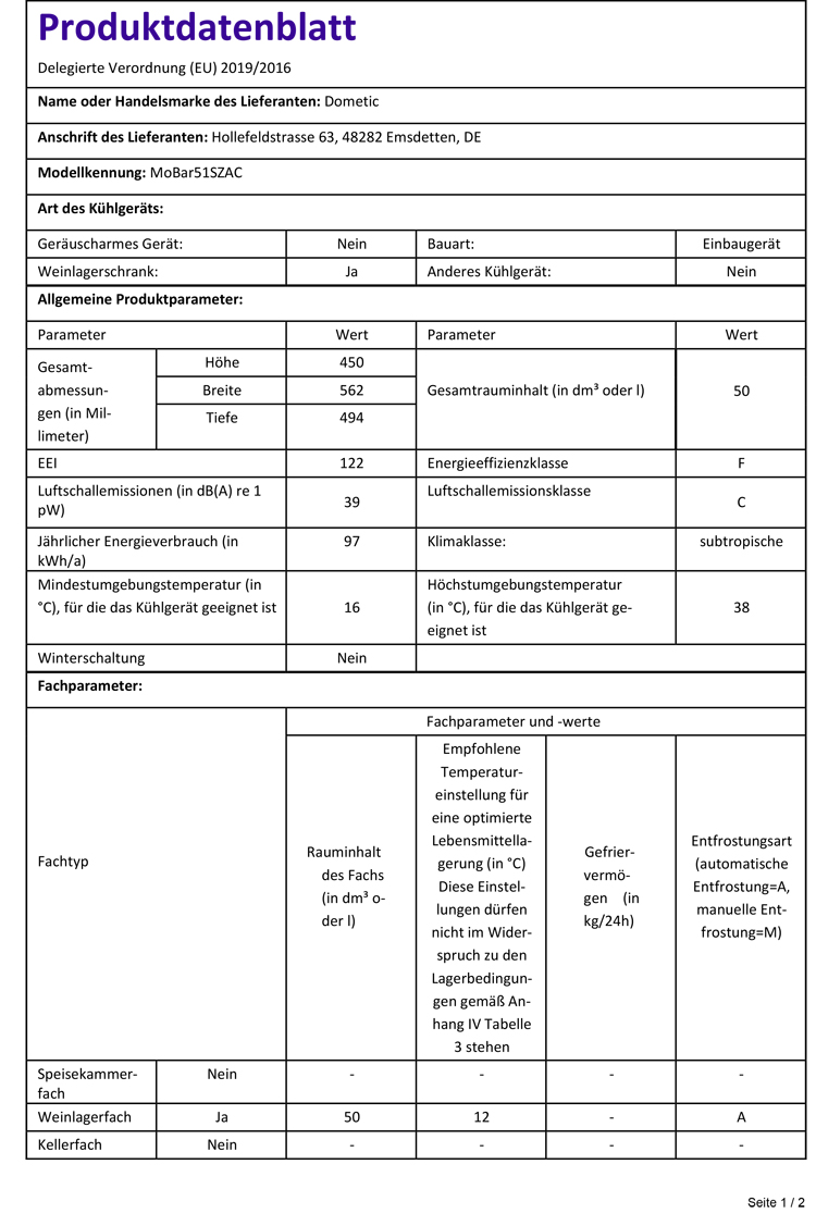 - Energy efficiency class (Regulation (EU) 2019/2016) F