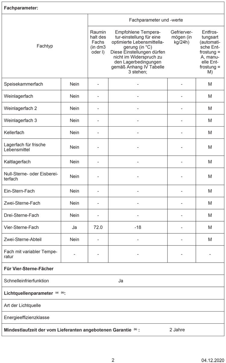 - ****-Gefrierraum: 72 l Nutzinhalt