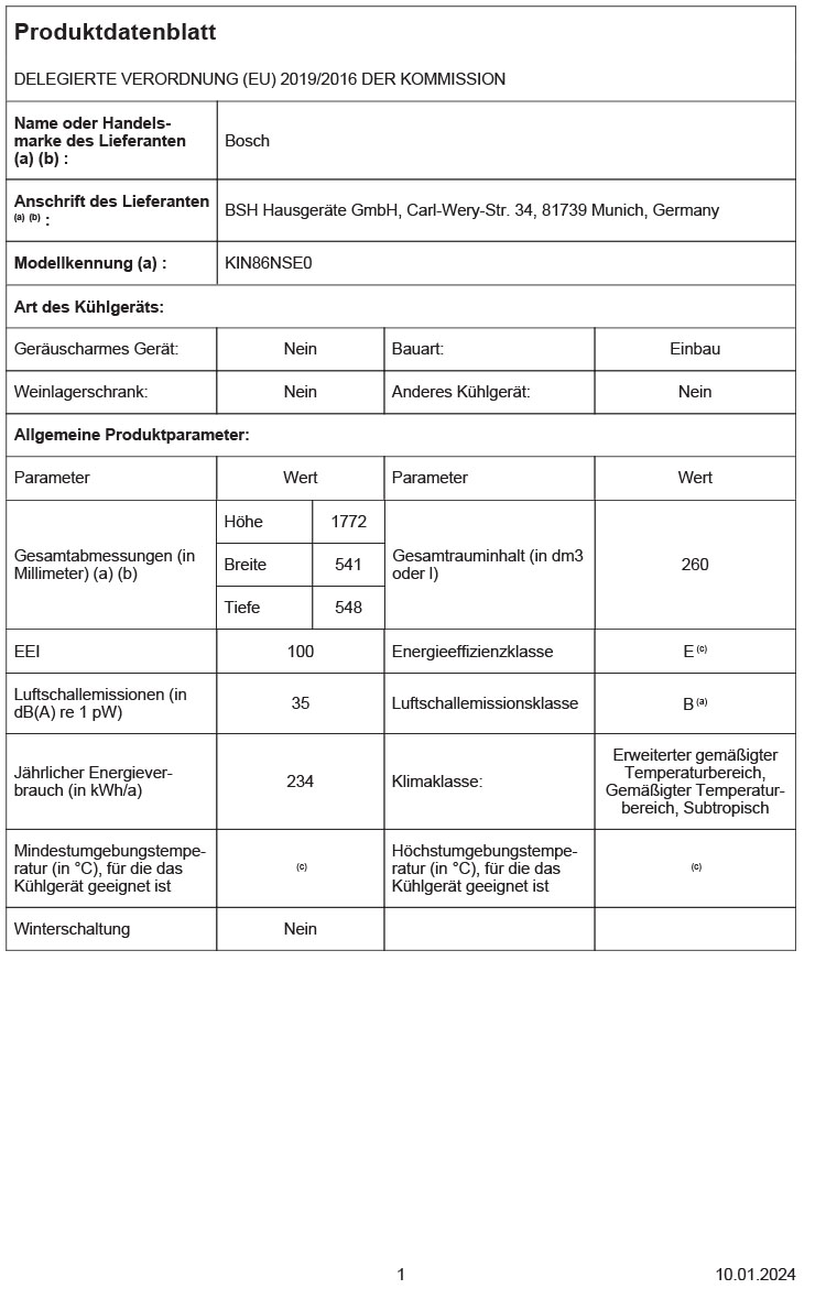 - Durchschnittlicher Energieverbrauch in Kilowattstunden pro Jahr (kWh/a): 234 kWh/annum