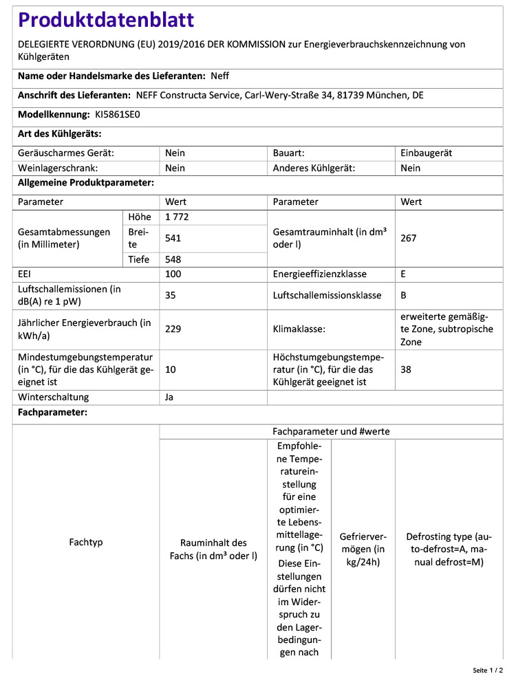- Energieverbrauch: 229 kWh/Jahr