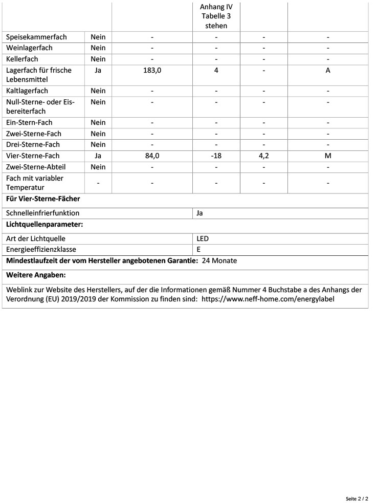 - Nutzinhalt Kühlfächer: 183 l