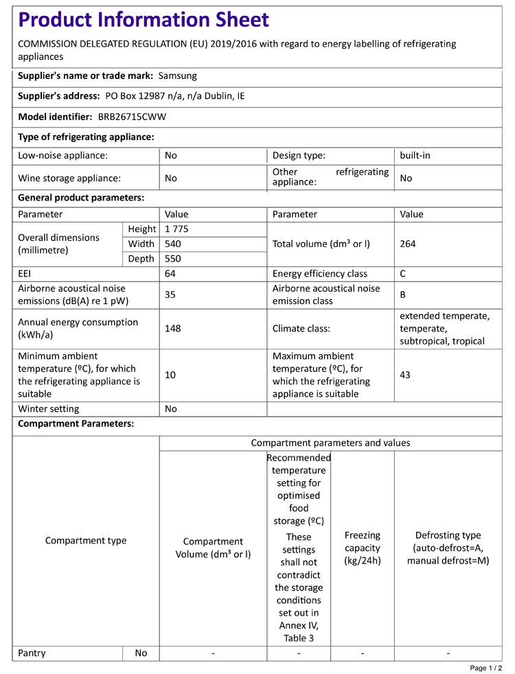 - Jährlicher Energieverbrauch kWh/Jahr 148
