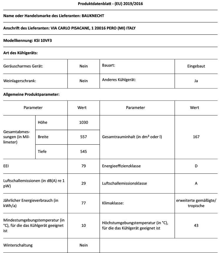- Nutzinhalt: 167 l Kühlen, gesamt 167 l