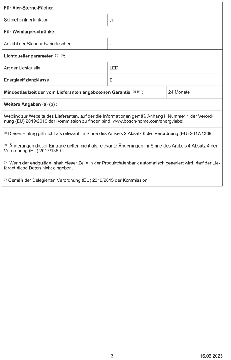 - Nutzinhalt Tiefkühlfächer: 15 l