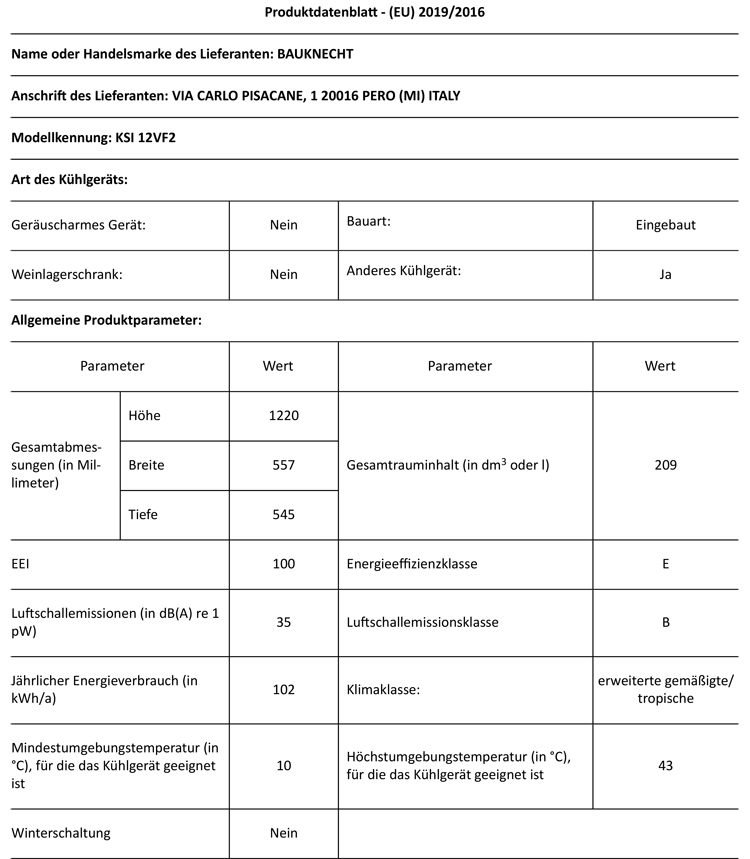 - Nutzinhalt: 209 l Kühlen, gesamt 209 l