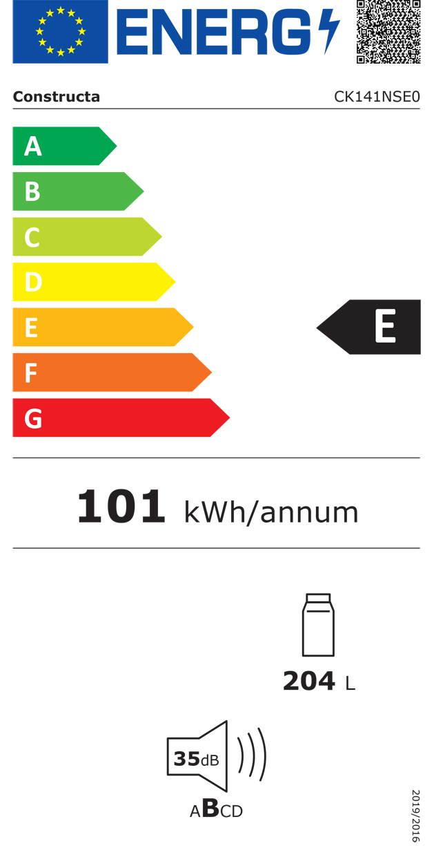 - Energieeffizienzklasse: E auf einer Skala von A (höchste Effizienz) bis G (geringste Effizienz)