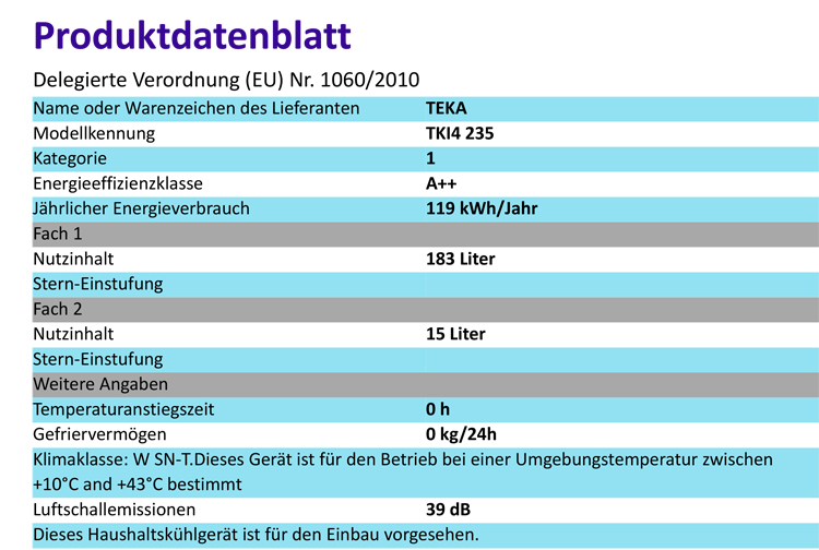 - Austausch gegen einen gleichwertigen oder neuen Artikel Teka TKI4 235 EU, Einbau-Kühlschrank, 122 cm (ggf. auch ein Nachfolgemodell)