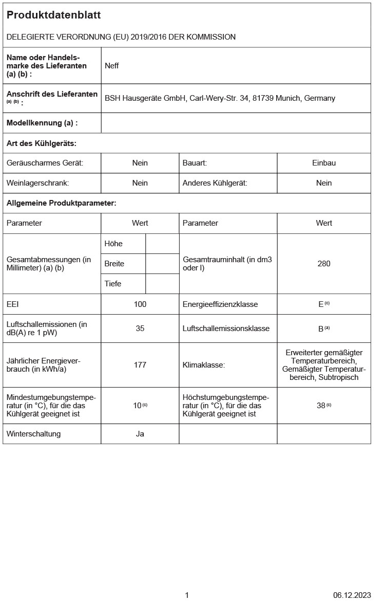 - Nutzinhalt gesamt: 280 l