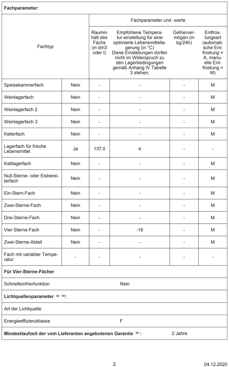 - Energieverbrauch: 114 kWh/Jahr 1)