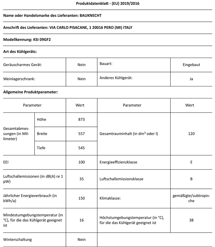 - Nutzinhalt: 102 l Kühlen, 18 l Gefrieren, gesamt 120 l