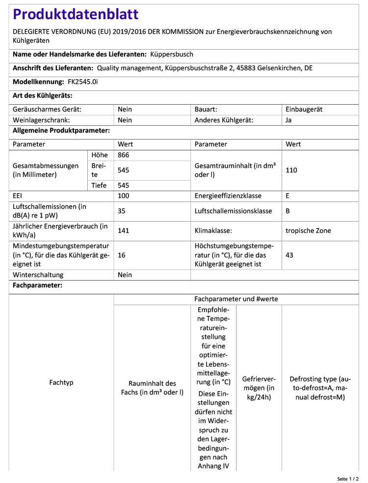 • Austausch gegen einen gleichwertigen oder neuen Artikel Küppersbusch FKF 2545.0 i (ggf. auch ein Nachfolgemodell).