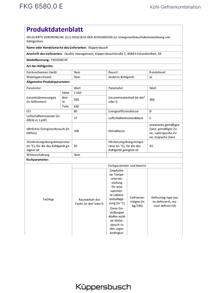 • Austausch gegen einen gleichwertigen oder neuen Artikel Küppersbusch FKG 6580.0 E (ggf. auch ein Nachfolgemodell).