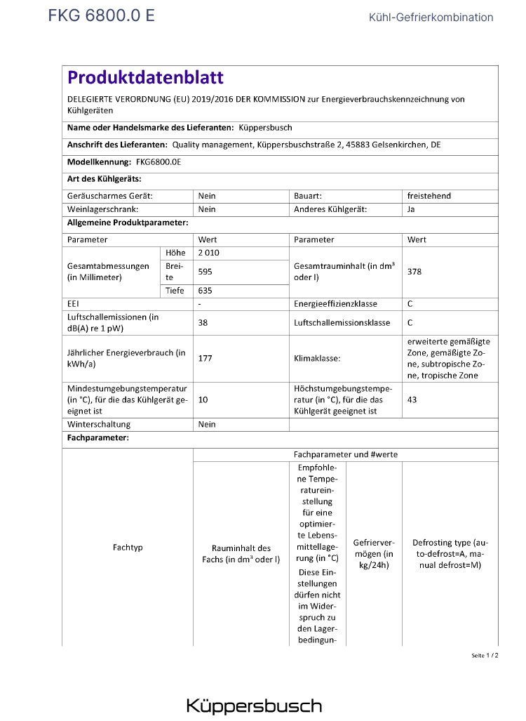 • Austausch gegen einen gleichwertigen oder neuen Artikel Küppersbusch FKG 6800.0 E (ggf. auch ein Nachfolgemodell).