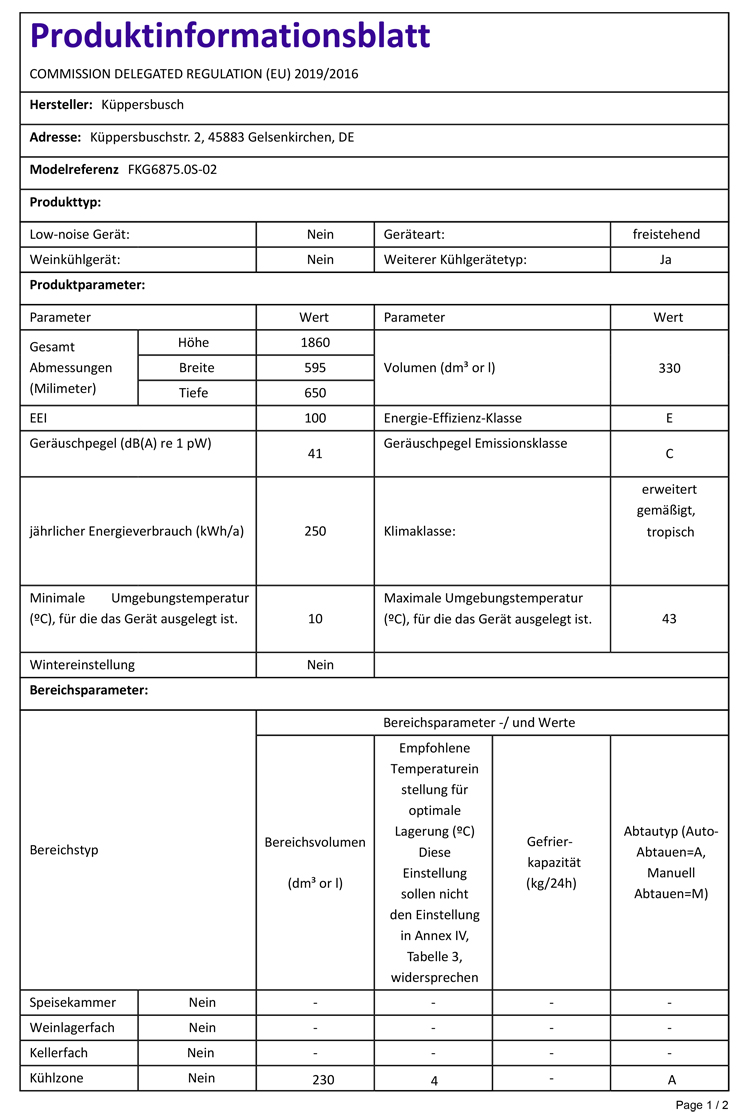 • Austausch gegen einen gleichwertigen oder neuen Artikel Küppersbusch FKG 6875.0 S-02 (ggf. auch ein Nachfolgemodell).
