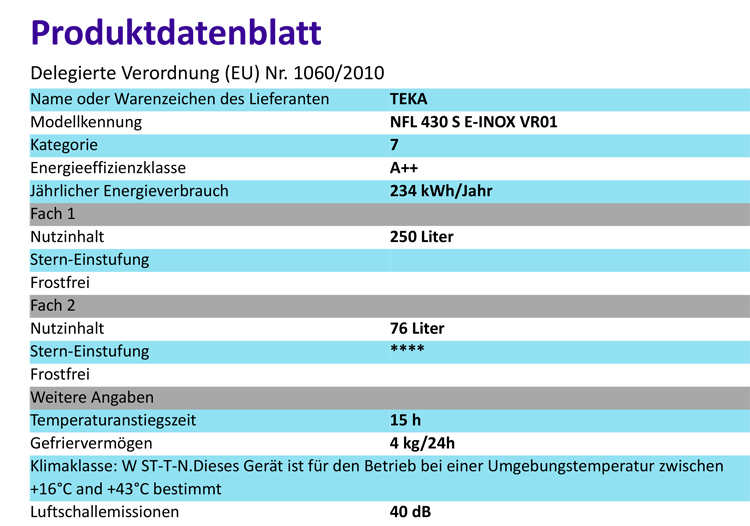 - Austausch gegen einen gleichwertigen oder neuen Artikel Teka NFL 430 S EU, Kühl-Gefrierkombination, 201 cm (ggf. auch ein Nachfolgemodell)