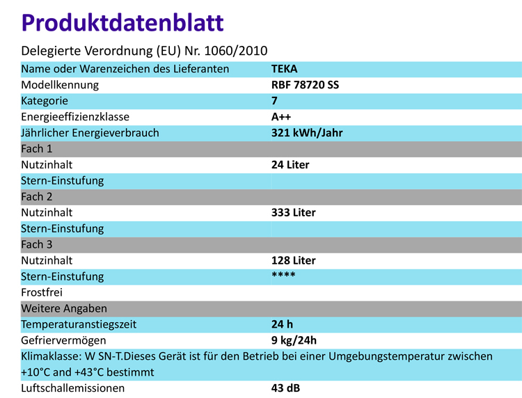 - Austausch gegen einen gleichwertigen oder neuen Artikel Teka RBF 78720 SS EU, Kühl-Gefrierkombination, 192 cm (ggf. auch ein Nachfolgemodell)