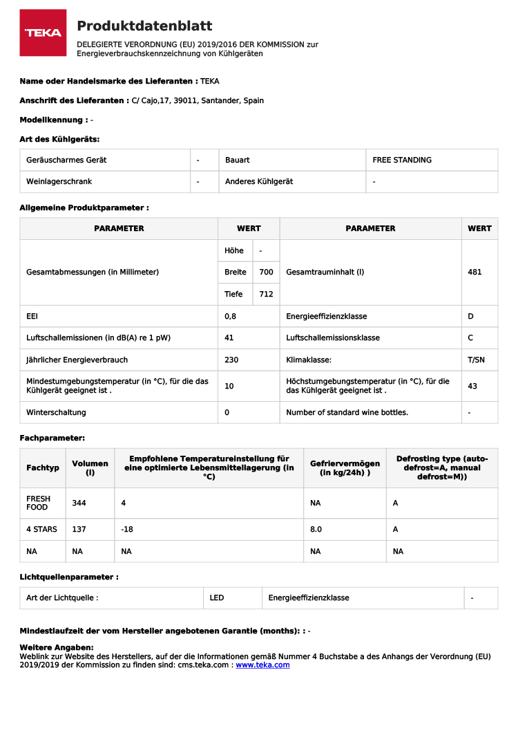 - Austausch gegen einen gleichwertigen oder neuen Artikel Teka RBF 78725 SS, Kühl-Gefrierkombination, 192 cm (ggf. auch ein Nachfolgemodell)