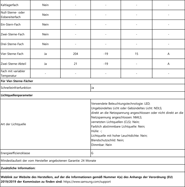 Volumen des Gefrierfachs (Vier Sterne Fach) **** 225 Liter