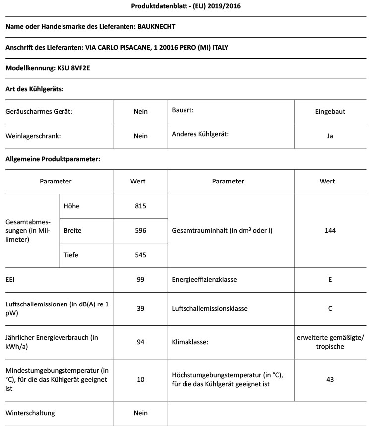 - Nutzinhalt: 144 l Kühlen, gesamt 144 l