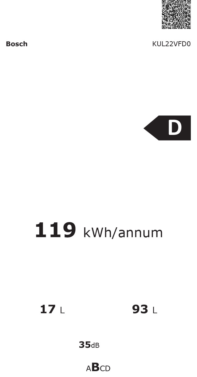 - Durchschnittlicher Energieverbrauch in Kilowattstunden pro Jahr (kWh/a): 119 kWh/annum