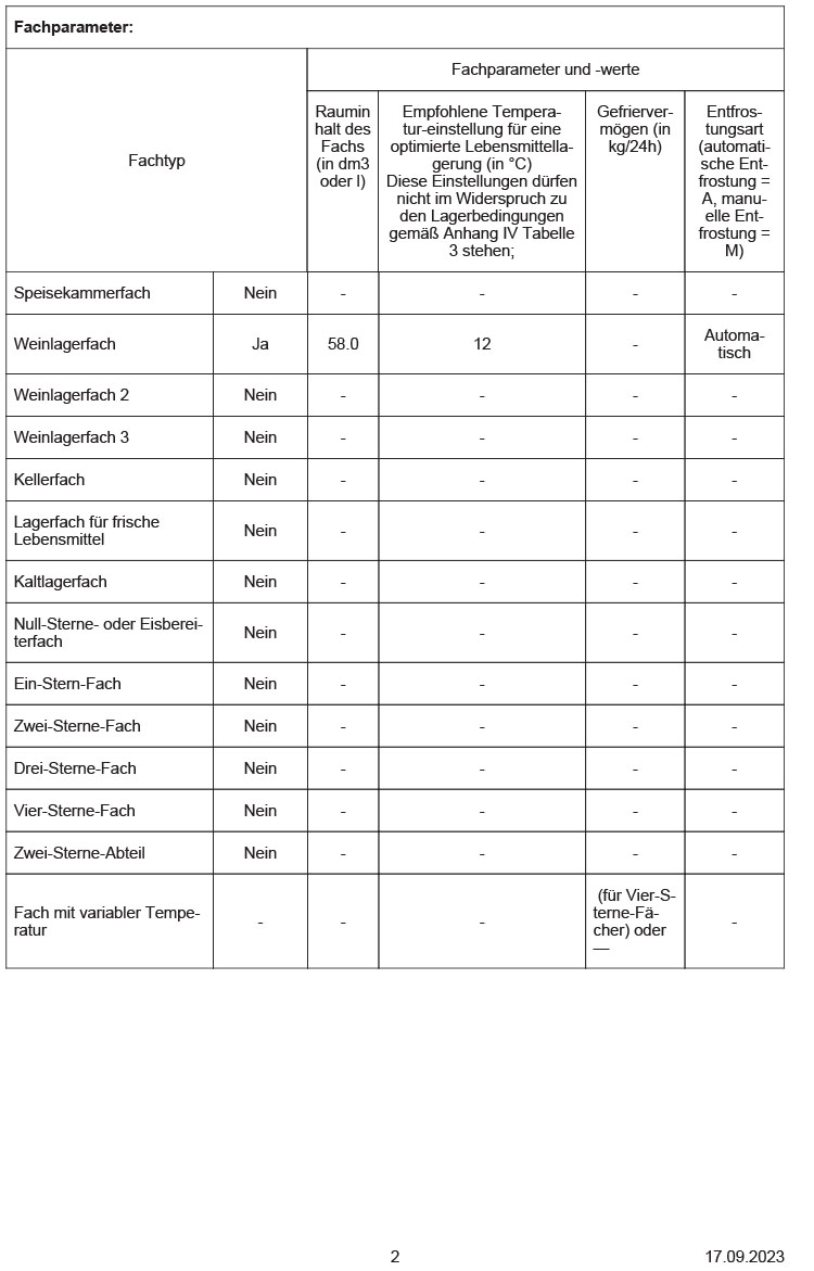 - Nutzinhalt Tiefkühlfächer: 0 l