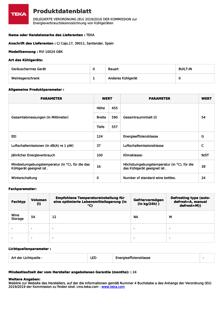 - Austausch gegen einen gleichwertigen oder neuen Artikel Teka Sommelier RVI 10024 GBK, Einbau-Weinkühlschrank, 45 cm (ggf. auch ein Nachfolgemodell)