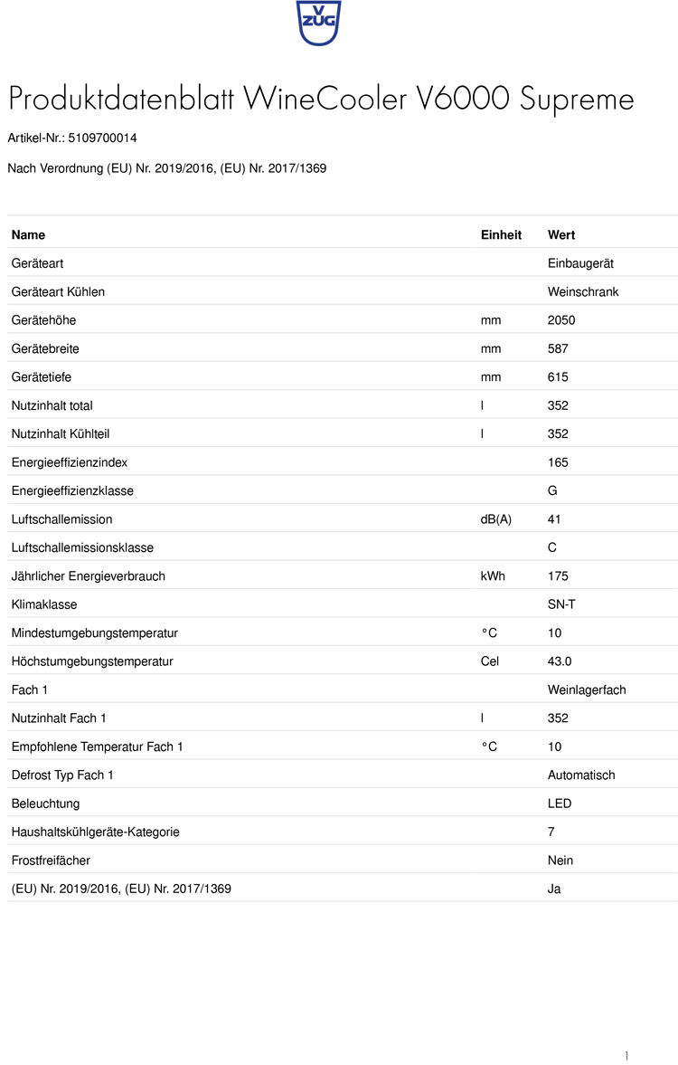- Austausch gegen einen gleichwertigen oder neuen Artikel V-ZUG Winecooler V6000 Supreme, Einbau Weinkühlschrank, 5109700014 (ggf. auch ein Nachfolgemodell)