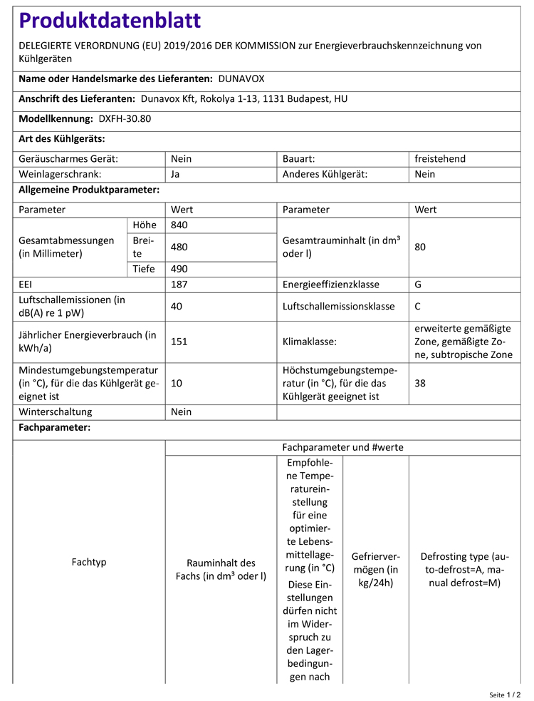 - Jahresverbrauch gilt bei Voraussetzung einer Umgebungstemperatur von 25°C und einer Betriebstemperatur von ≥4°C.