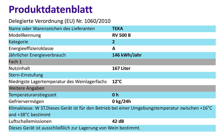 - Austausch gegen einen gleichwertigen oder neuen Artikel Teka RV 500 B EU, Stand Weinkühlschrank, 127 cm (ggf. auch ein Nachfolgemodell)
