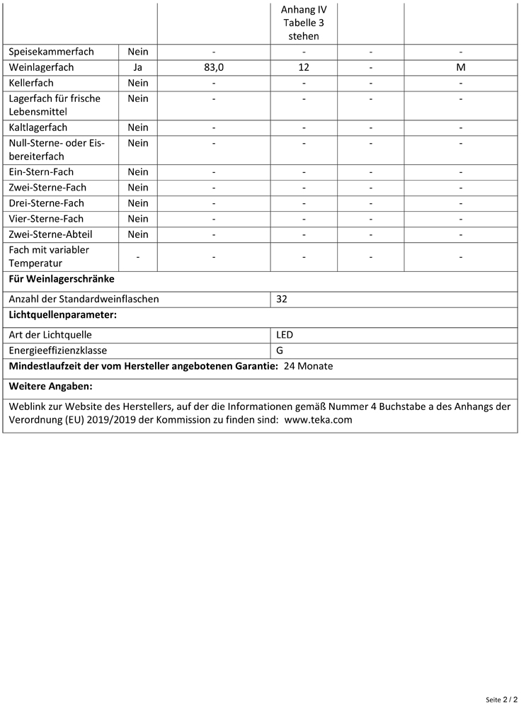 - Austausch gegen einen gleichwertigen oder neuen Artikel Teka RVF 10032 GBK, Stand Weinkühlschrank, 78 cm (ggf. auch ein Nachfolgemodell)