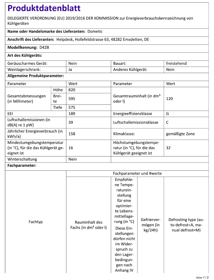 - Energy efficiency class (Regulation (EU) 2019/2016) G