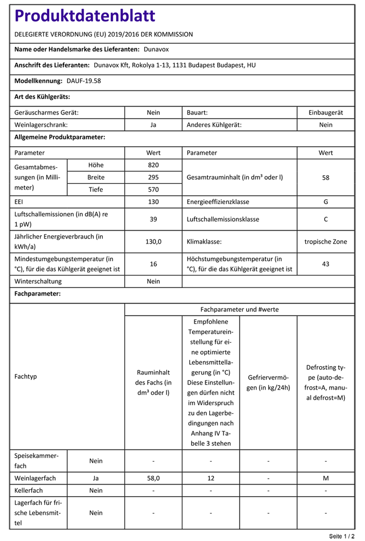- Jahresverbrauch gilt bei Voraussetzung einer Umgebungstemperatur von 25°C und einer Betriebstemperatur von ≥4°C.