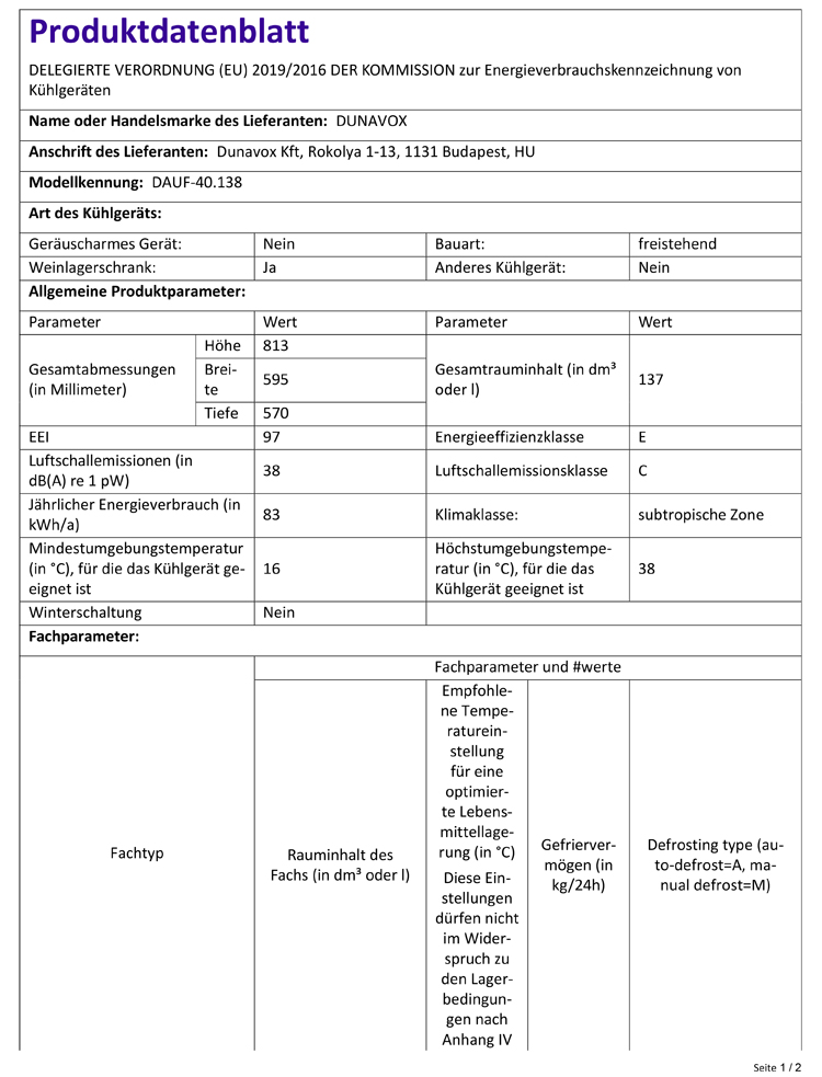- Jahresverbrauch gilt bei Voraussetzung einer Umgebungstemperatur von 25°C und einer Betriebstemperatur von ≥4°C.