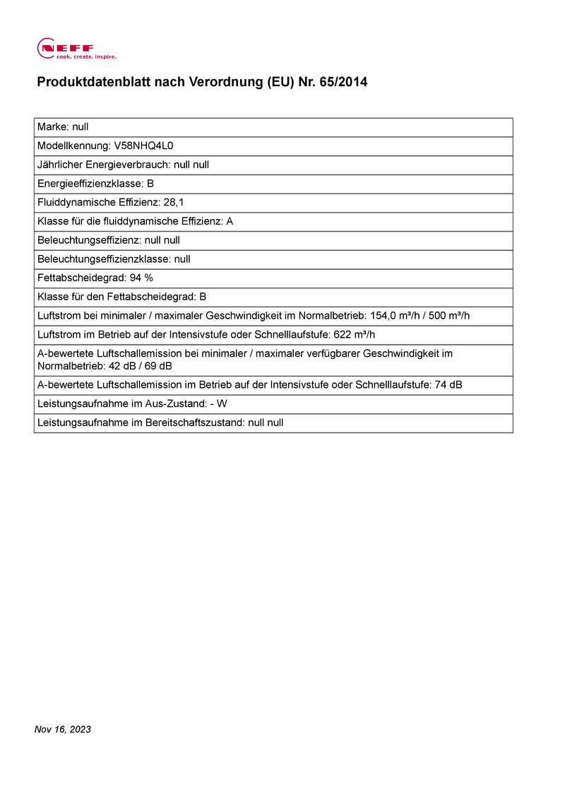 - Abluftleistung (nach EN 61591): min. Normalstufe 154 m3/h , max. Normalstufe 500 m3/h , max. Boost-/Intensivstufe 622 m3/h