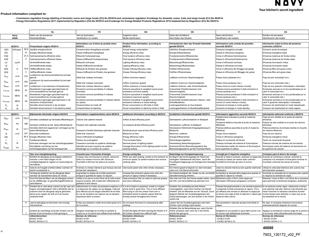 - Fettfilter-Effizienzklasse (GFEDunsthaube) C