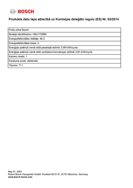 - Energieeffizienzklasse (gem. EU Nr. 65/2014): A (auf einer Energieeffizienzklassen-Skala von A+++ bis D)