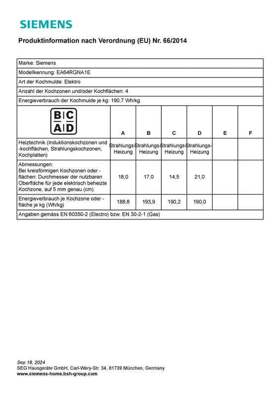 Energieeffizienzklasse (gem. EU Nr. 65/2014): A+ (auf einer Energieeffizienzklassen-Skala von A+++ bis D)