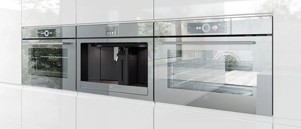 Die Geräte der Excellence Line sind auf das Wesentliche reduziert. Durch das verspiegelte Glas der Fronten greifen sie die Farben und Materialien der Umgebung auf und integrieren sich nahtlos in jede Küche.